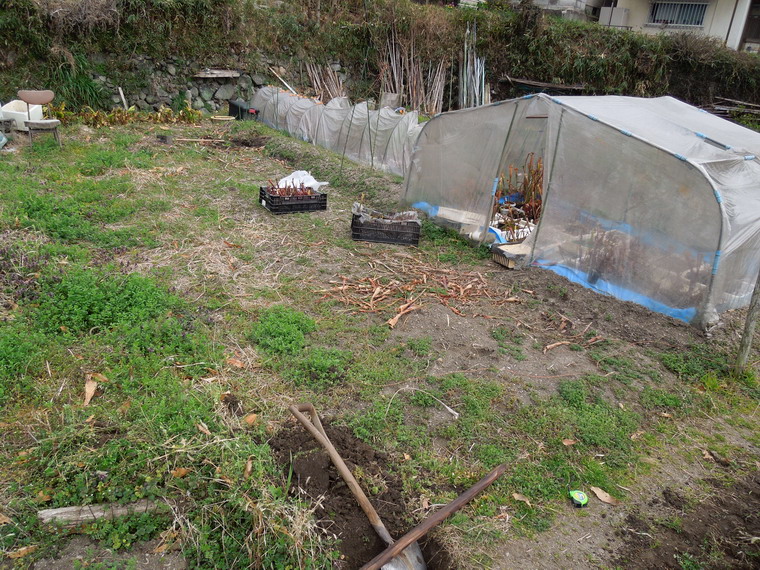 多少位置が変わって植えなおされていて、新しい土が入れられたため元気が出たようで太い蔓をどんどん伸ばしていました。
